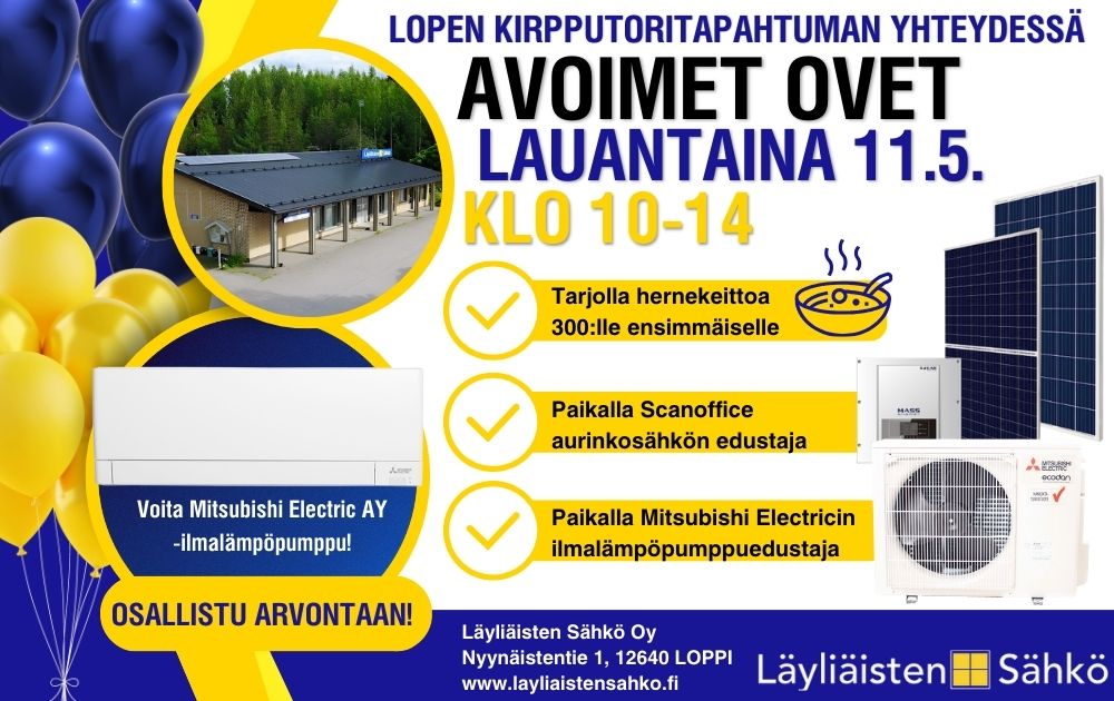 Paikalla Scanoffice aurinkosähkön edustaja sekä Mitsubishi Electricin ilmalämpöpumppuedustaja.